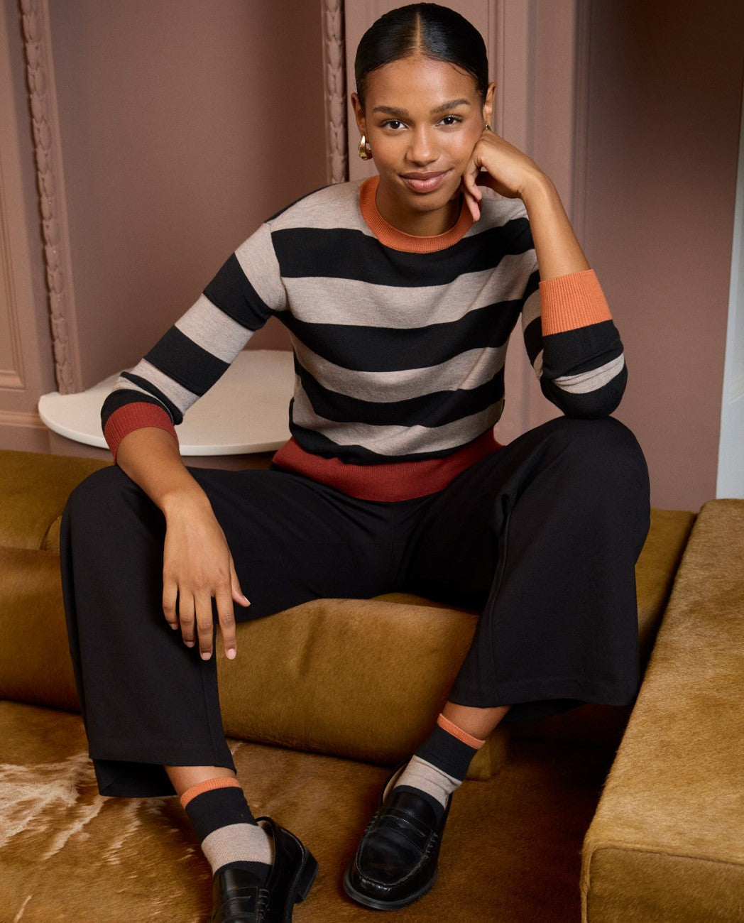 Straight pants without zippers, with pockets and decorative button detail at the waist that mimics a belt. Its flattering design and stretch fabric make it perfect for long days without sacrificing style.